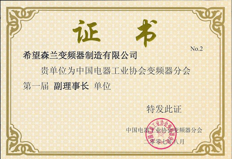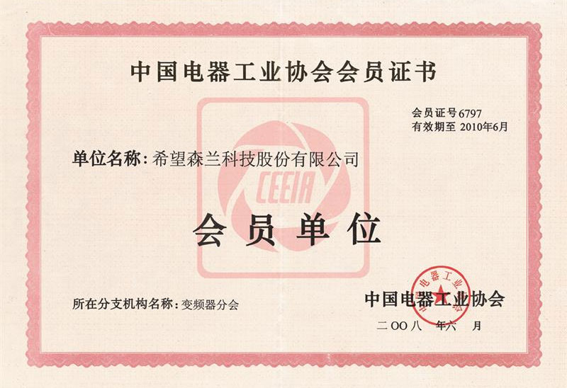电器工业协会变频器分会会员单位证书