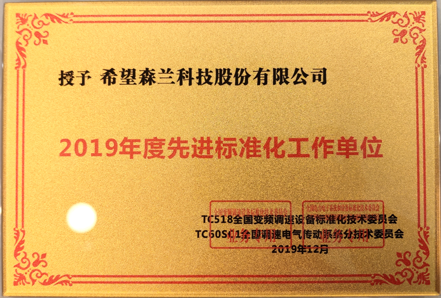 2019年度先进标准化工作单位