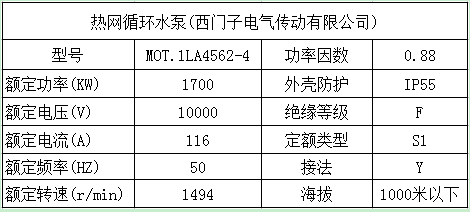 (2)热网循环水泵参数及电机参数